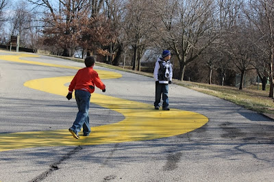 We spent the day at the Louisville zoo. We have had wonderful weather but the cold is suppose to come back so I thought we would take advantage of the nice day. Plus we thought they were going to have a zoo tour today. But when we got there we were told that they stopped doing them the week before :( We were disappointed (me mainly) but decided to have a great day anyway. And boy did we! A few of the animals were not out but the ones that were, well they were frisky!!! We got to watch the penguins being feed. The swans swam over and played "bowing and honking" with the boys. The lions were VERY frisky!!!! The Bongos were chasing the cranes around their inclosure. Then one ran right up to where we were standing, like three feet from us. It was so cool!!!!